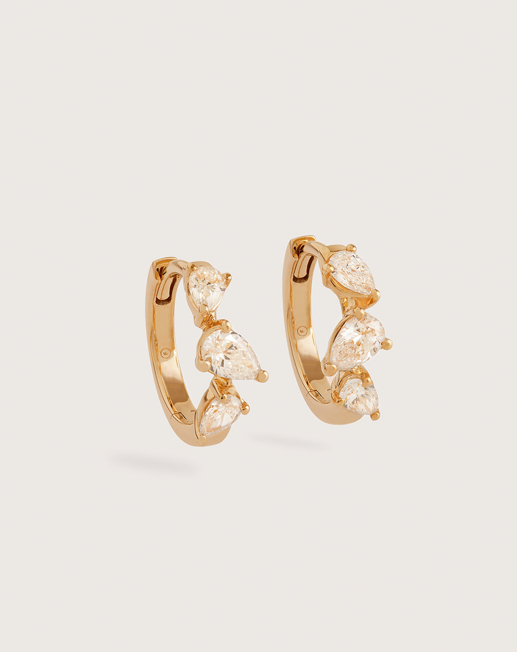 - The Pear Trio Diamond Huggies are an elevated, more distinctive version of our best-selling Diamond Set Huggies, that are still suited to everyday wear