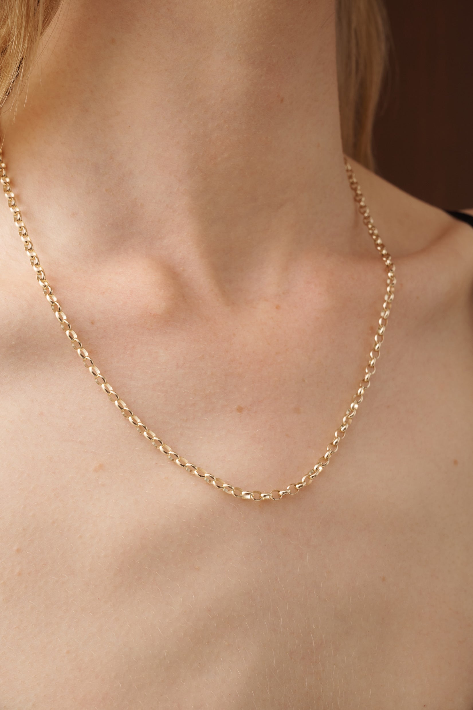- 9k yellow gold oval belcher link chain