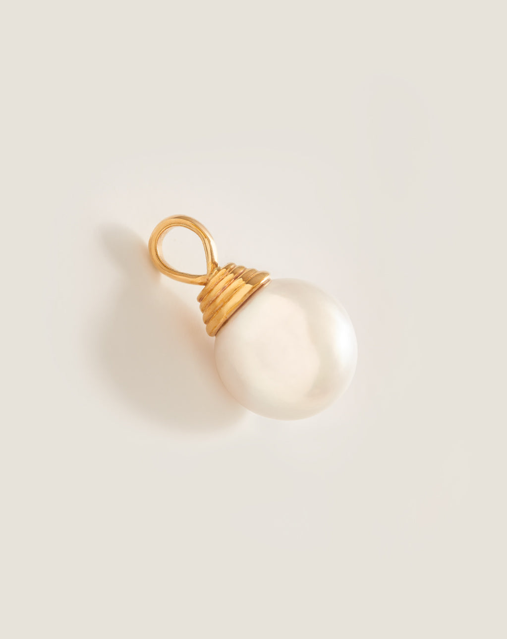 - 13mm round freshwater pearl with a 9k yellow gold fitting featuring a ridge style design